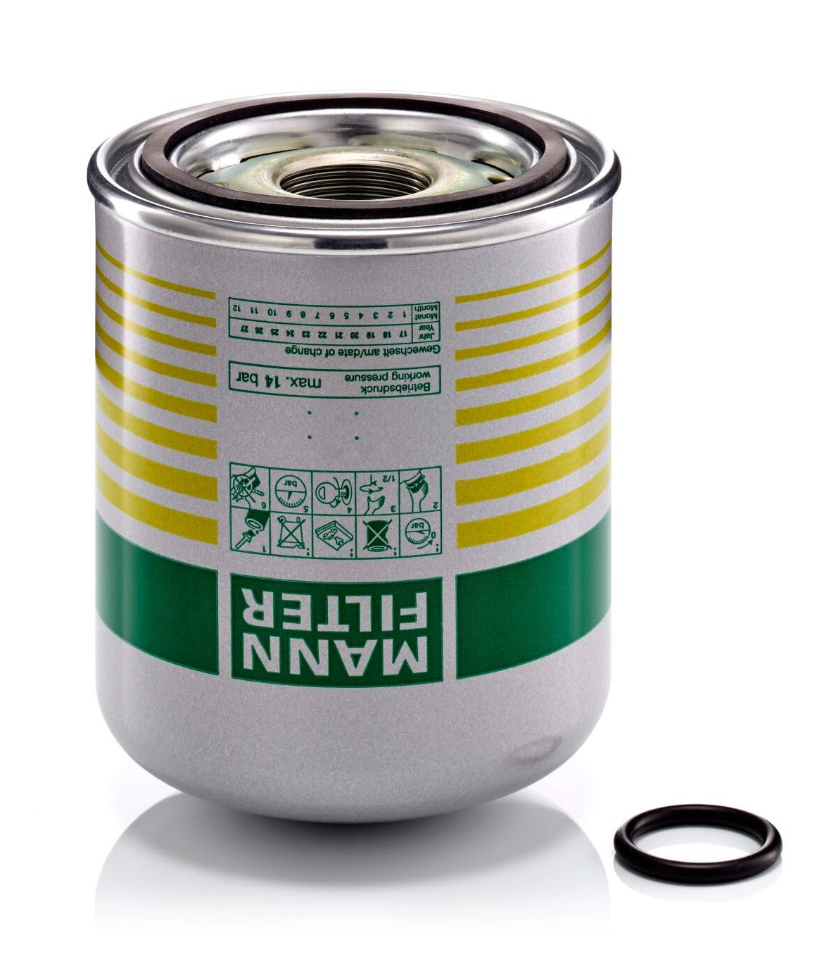 MANN-FILTER air dryer cartridges dehumidify and clean the compressed air in pneumatic systems, especially in commercial vehicle brake systems. As a result, they reliably prevent moisture accumulation and thus damage to your system.. The silver “Advanced Performance” air dryer cartridge offers optimum drying performance in distribution haulage or mixed operation. Ideal for heavy loads and increased compressed-air requirements. Improved system protection with coalescing filter..Specification