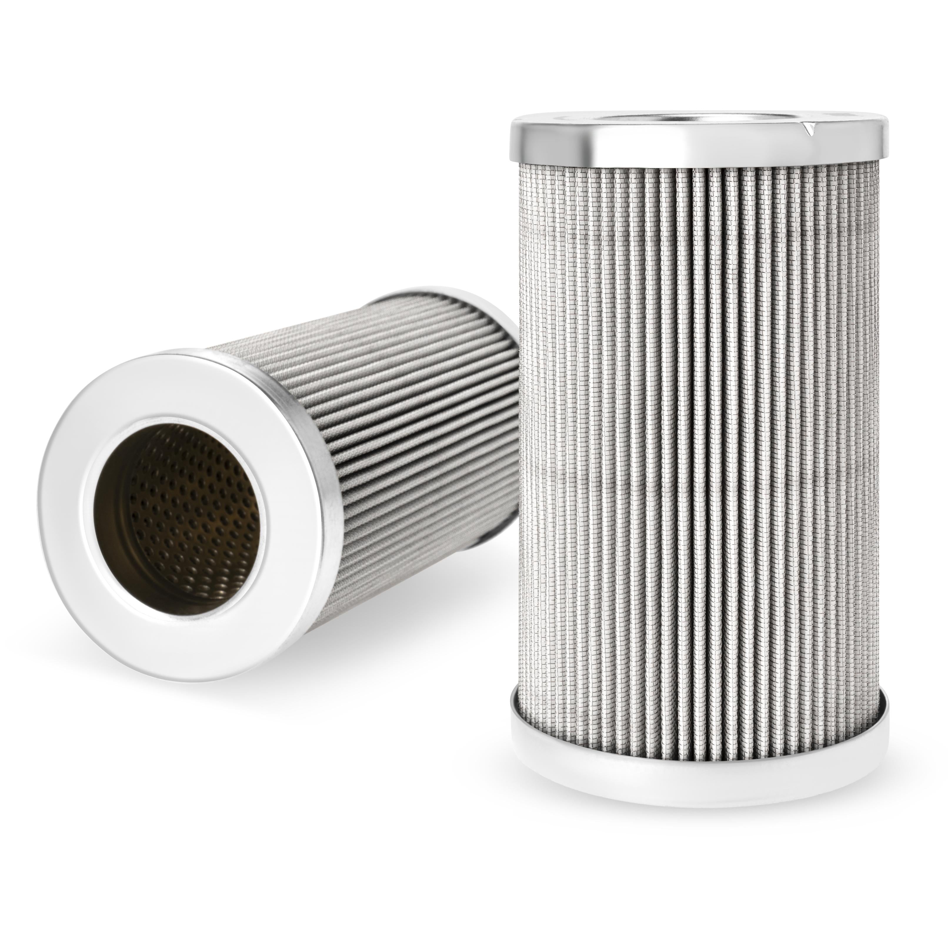 The efficiency of the element is shown using the Micron (µ) and Beta (β) ratings. The micron rating indicates the size of the particle being filtered and the beta rating the efficiency, calculated as 1/β.