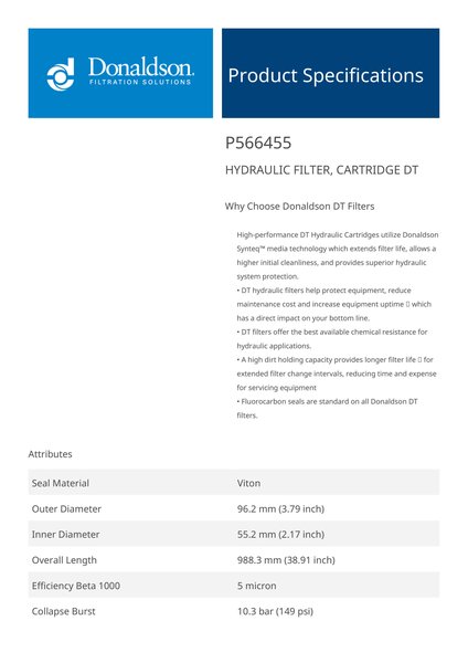 Donaldson P566455 Hydraulic Filter, Cartridge Dt | Replaces the Pall HC9400FMP39H