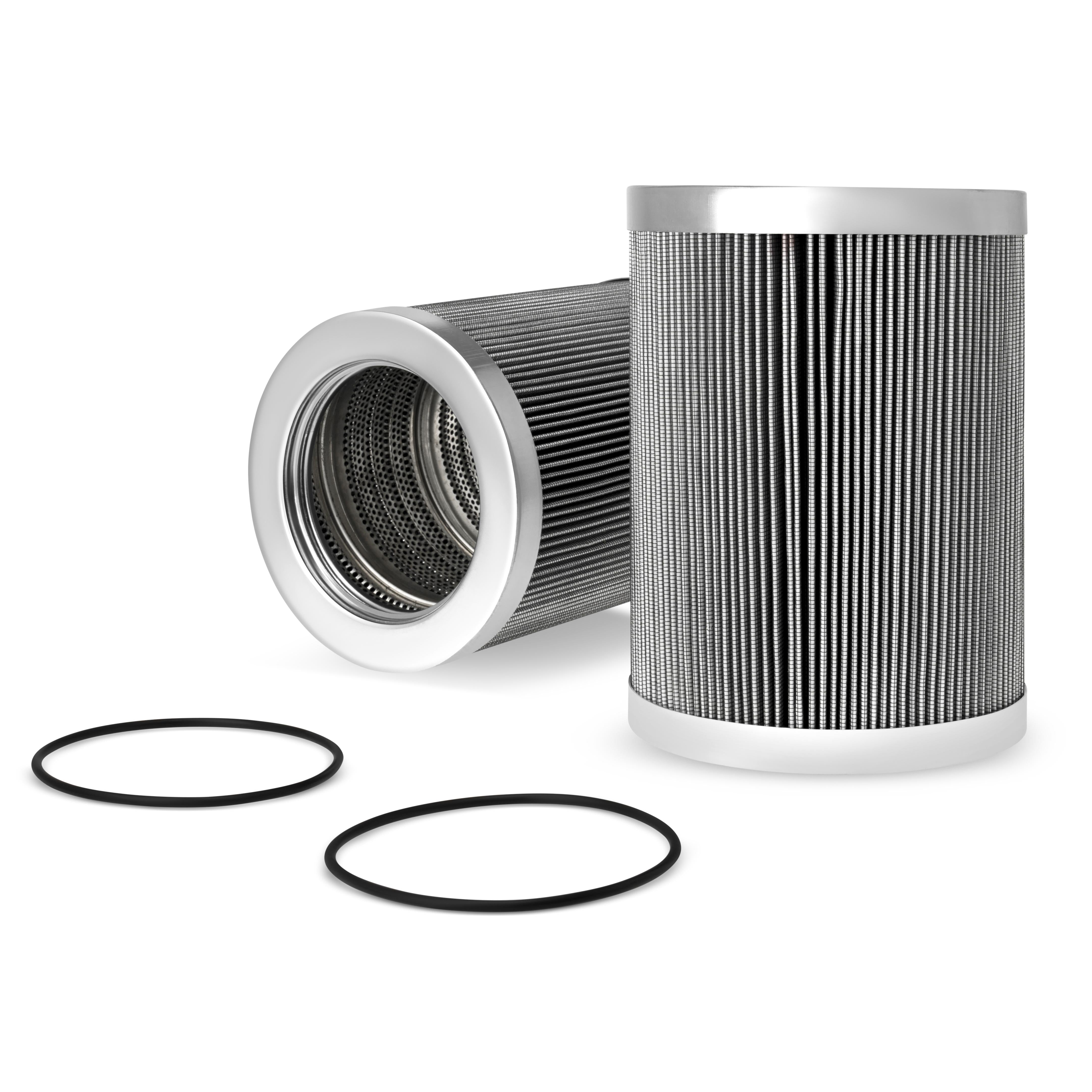The efficiency of the element is shown using the Micron (µ) and Beta (β) ratings. The micron rating indicates the size of the particle being filtered and the beta rating the efficiency, calculated as 1/β.